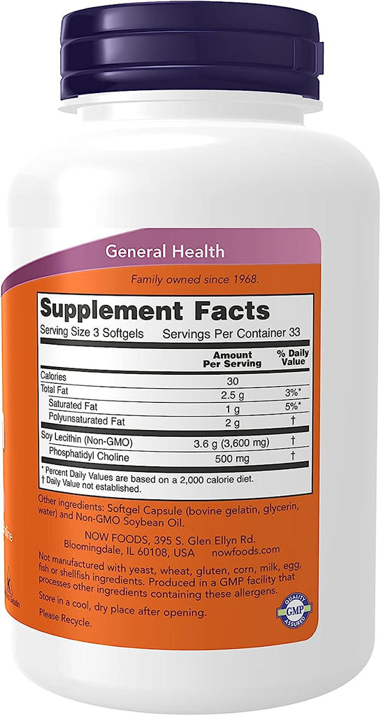 Naturally occurring Phosphatidyl Choline Product Note: Exposure to heat or sunlight may lead to melting/damage of product. Hence customers are expected to be available during the product delivery Supports Brain & Nerve Function.Kosher Nervous System Support GMP Quality Assured: NPA A-rated GMP certification means that every aspect of the NOW...